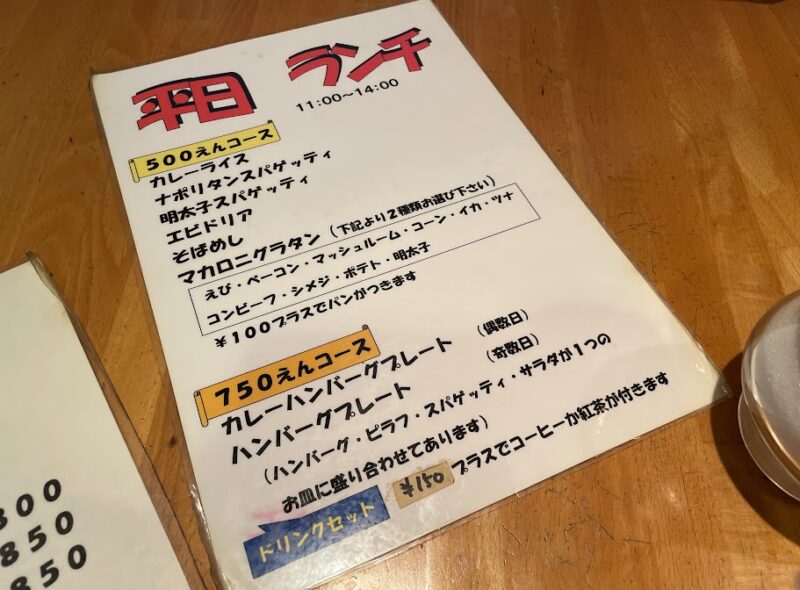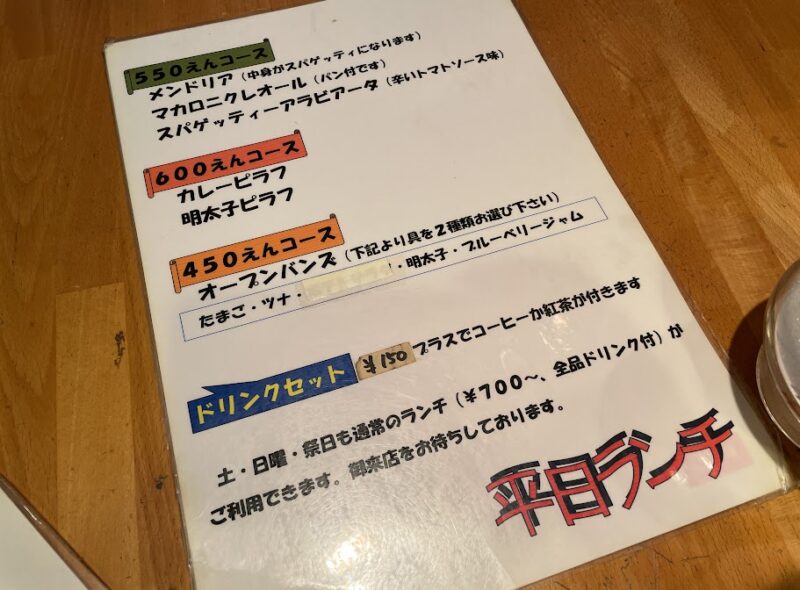 これらは平日の価格みたいですが、土日でも700円からランチが楽しめるようです。